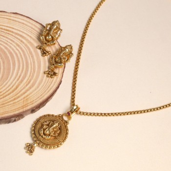 Divine Grace Gold Ganesha Pendant With Chain Set