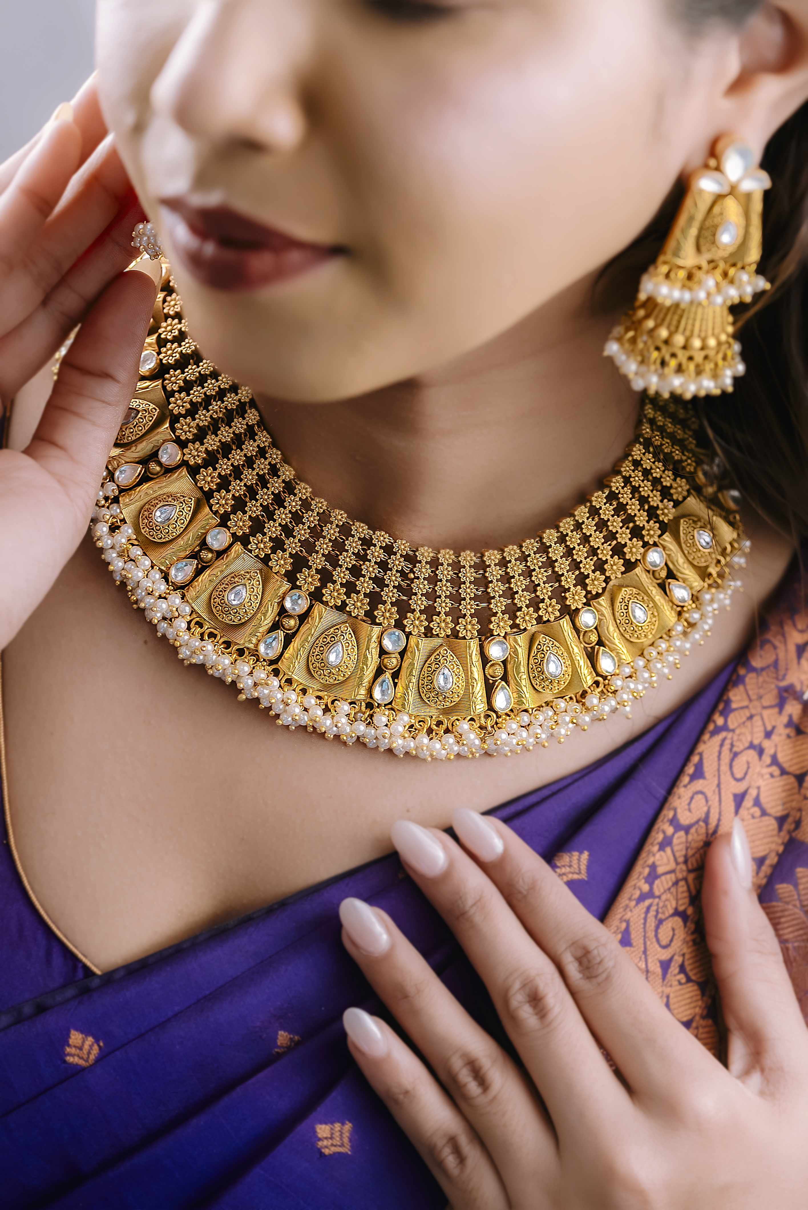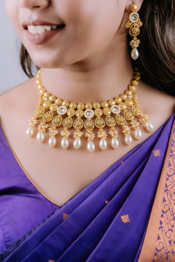 Antique gold heritage kundan neckalce set