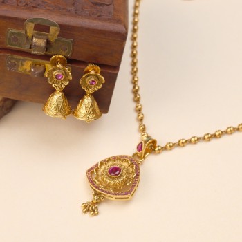 Antique Gold Floral Pendant With Beaded Chain set