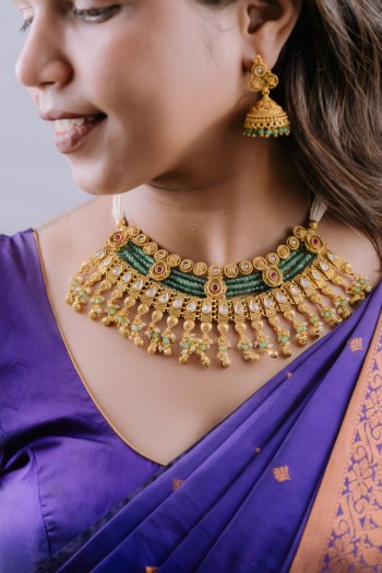 Antique Gold Rajwadi Meena Necklace Set
